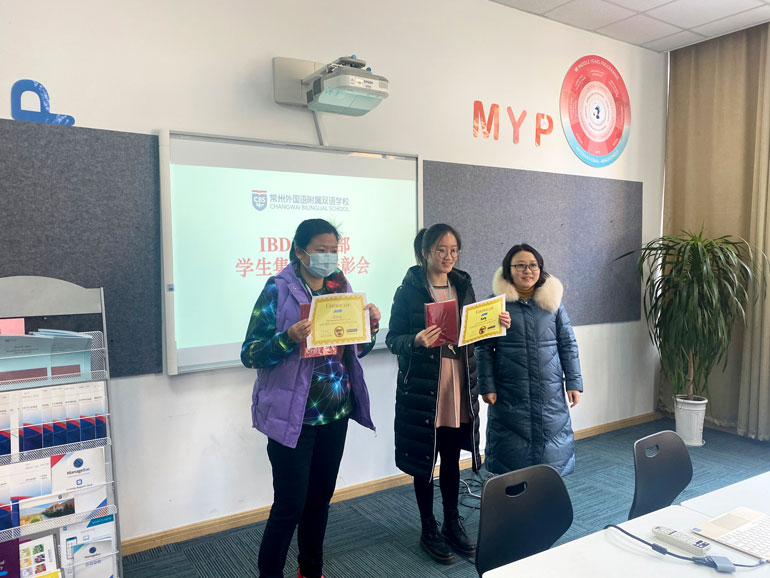 根据学术成绩、课外活动、德育表现、综合自评和他评评选方式,学校表彰了两名校级优秀学生DP班的顾宸亦,Pre DP班的郑景帆,我们也评选出五名学部先进学生,他们是DP班的吴睿哲和陆泓名,Pre DP班的周笑羽、朱晋楠和李浩明。